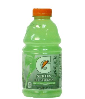 Gatorade wide-mouth bottles are used by athletes around the world to help them rehydrate and perform at their best while recharging and refueling their metabolism. This is the New Gatorade formula in Cucumber Lime flavor, with the unique thirst quenching blend of fluid, electrolytes and carbohydrates to keep you going strong during exercise and competition. Each case contains 12 wide mouth bottles of 32 oz. Gatorade original formula in thirst quenching Cucumber Lime flavor, to help maintain adequate thirst for hydration, speeding the necessary fluids back into the body and keeping muscles working throughout exercise. Just open a 32 oz. Cucumber Lime bottle of liquid Gatorade, and you'll rapidly deliver fluid and energy into the body. Gatorade wide-mouth bottles are perfect to replenish lost minerals and help regulate body functions, prevent dehydration and heat stress. This is the most tested sports drink on the planet.INGREDIENTS:WATER, SUCROSE, DEXTROSE, CITRIC ACID, NATURAL AND ARTIFICIAL FLAVOR, SALT, SODIUM CITRATE, MONOPOTASSIUM PHOSPHATE, GUM ARABIC, GLYCEROL ESTER OF ROSIN, YELLOW 5, BLUE 1 Read more...