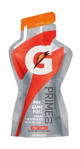 Fruit Punch Prime Pre Game Fuel from Gatorade®01 contains a concentrated blend of carbohydrates and B vitamins - delivering energy and helping to sustain your body's ability to burn additional carbohydrates when taken 15 minutes before competition. However you prepare, 01 Prime helps your preparation pay off.Gatorade Prime is a pre work, pre competition boost of carbohydrates and B vitamins.Nutritional InformationServing Size: 4 fl ozServings per Pouch: 1Amount per Serving:Calories - 100Total Fat - 0gSodium - 110mgPotassium - 35mgTotal Carbohydrate - 25gSugars - 23gProtein - 0gLow Sodium - No CaffeineIngredients: Water, isomaltulose, sucrose, dextrose, maltodextrin, citric acid, natural flavor, xanthan gum, salt, sodium citrate, monopotassium phosphate, niacinamide (vitamin B3), calcium pantothenate (vitamin B5), pyridoxine hydrochloride (vitamin B6). Read more...